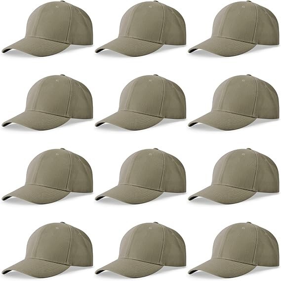 12 Pack Unisex Baseball Caps - Bulk Wholesale Blank Plain Adjustable Hats for Men & Women