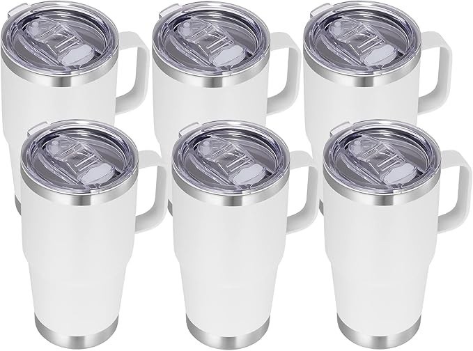 VEGOND 20 oz Tumbler Bulk with Handle Lid and Straw, Stainless Steel Insulated Travel Coffee Mug Set, Spill Proof Double Wall Metal Tumblers Cups, White 6 Pack